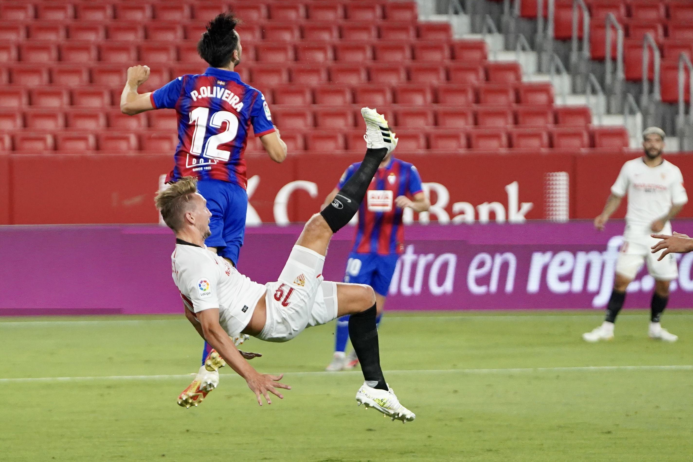 El encuentro que cerraba la jornada 34 de la Liga Santander enfrentaría a Sevilla y Eibar y finalizó con victoria local. Fue un partido tranquilo pero con final de infarto. En todos los 90 minutos no pudimos ver muchas ocasiones claras de gol ya que no fue un encuentro fluido ni con un claro dominador, aunque fue el Sevilla el que encontraría el camino de los tres puntos gracias a un gol de Ocampos. El Eibar pudo marcar, sobretodo al final, pero la defensa local se lo impidió en todo momento.